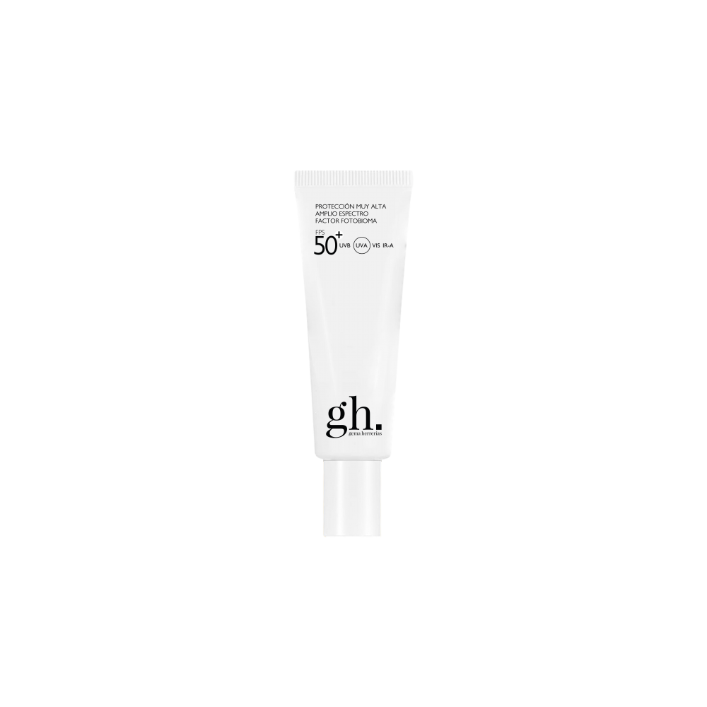 gh FPS50+ protección solar muy alta de amplio espectro sin color 50+ UVA VIS IR-A con factor fotobioma.