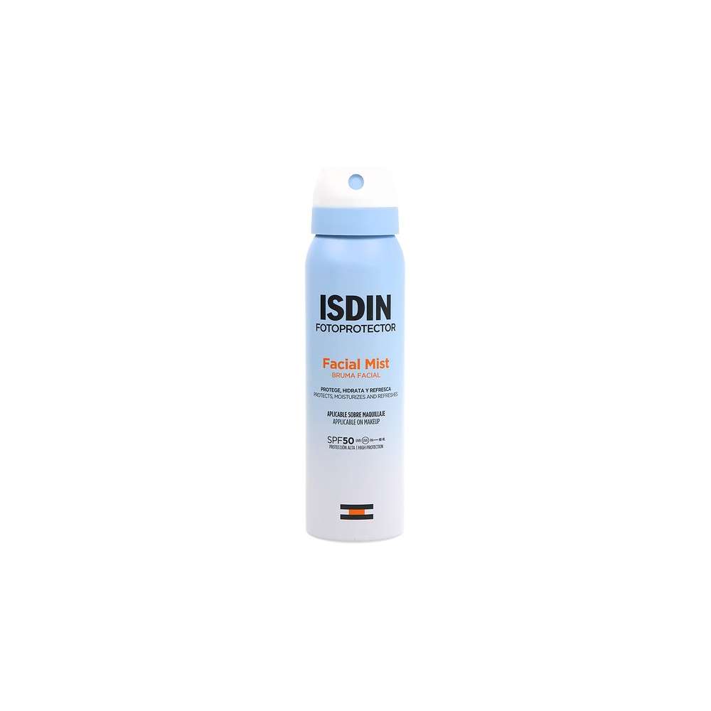 Protege, hidrata y refresca tu piel con Facial Mist SPF 50, el fotoprotector facial que se pulveriza en forma de bruma facial invisible y ultrafina. Aporta una alta protección frente a la radiación UVB/UVA y la luz azul, hidrata en profundidad y ayuda a restaurar la barrera cutánea. ¡Ideal para usar sobre el maquillaje!